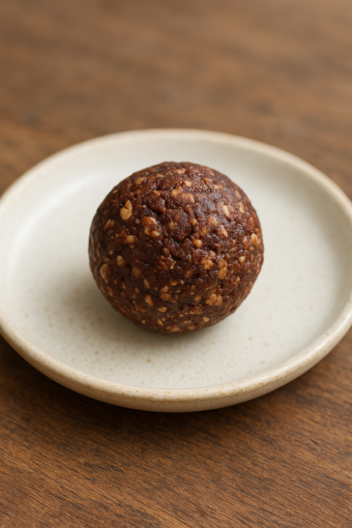 5 - Pour plus de gourmandise et de texture, rouler les boules dans un topping au choix : coco râpée, sésame, noisettes concassées...